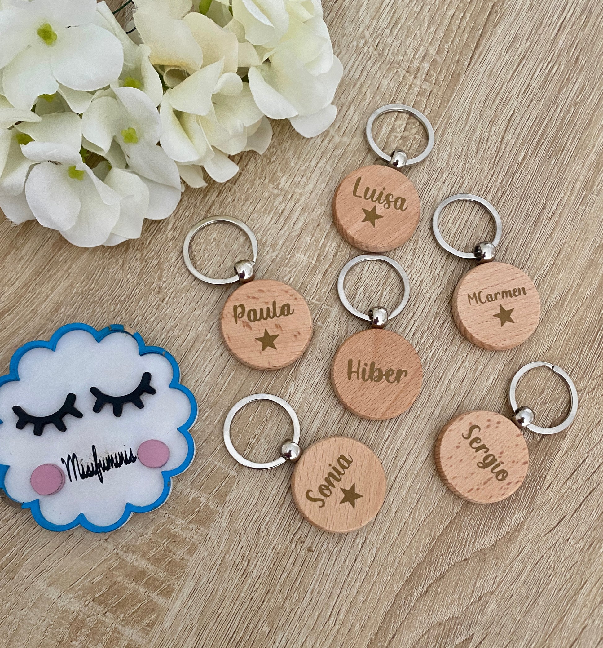 Llaveros personalizados de madera natural
